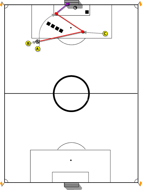 Player 1 pretends he is going to shoot but passes to player 2 in front of him. Lots of goals come from free-kicks accuracy is more important than power and in youth soccer because the goalkeeper will struggle to get anything in the corners. Using a dummy for a free kick involves playing the ball through the legs of one of your attackers to the other side of the pitch.
